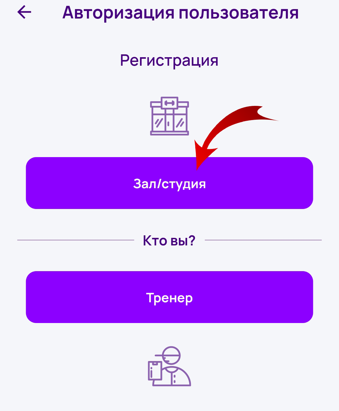 4. Выберите тип аккаунта "Зал". Только для этого типа аккаунтов доступна покупка разных тарифов. Тренеры лишь подлючаются в залу и получают тариф, как у зала, для них приложение бесплатное.