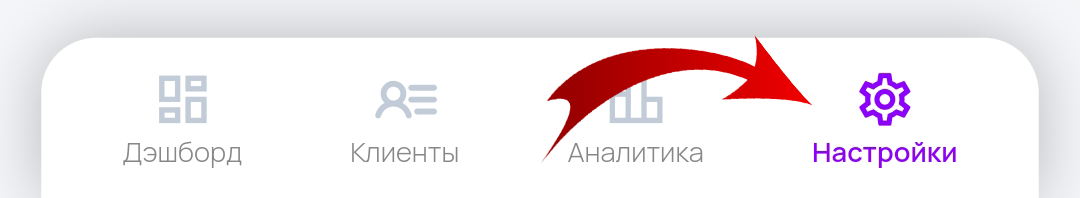 1. Чтобы подписка работала, надо зарегистрировать аккаунт в приложении 7Gym как зал/студия. Для этого откройте раздел "Настройки" в нижнем меню.