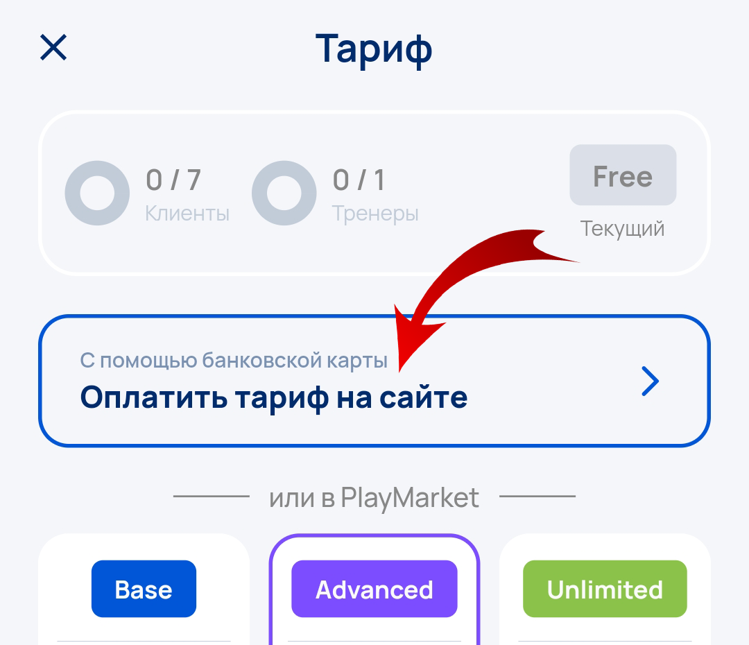 8. В разделе "Тариф" найдите кнопку "Оплатить тариф на сайте" или "Оплатить картой" (либо что-то подобное, может отличаться в зависимости от системы или версии).
